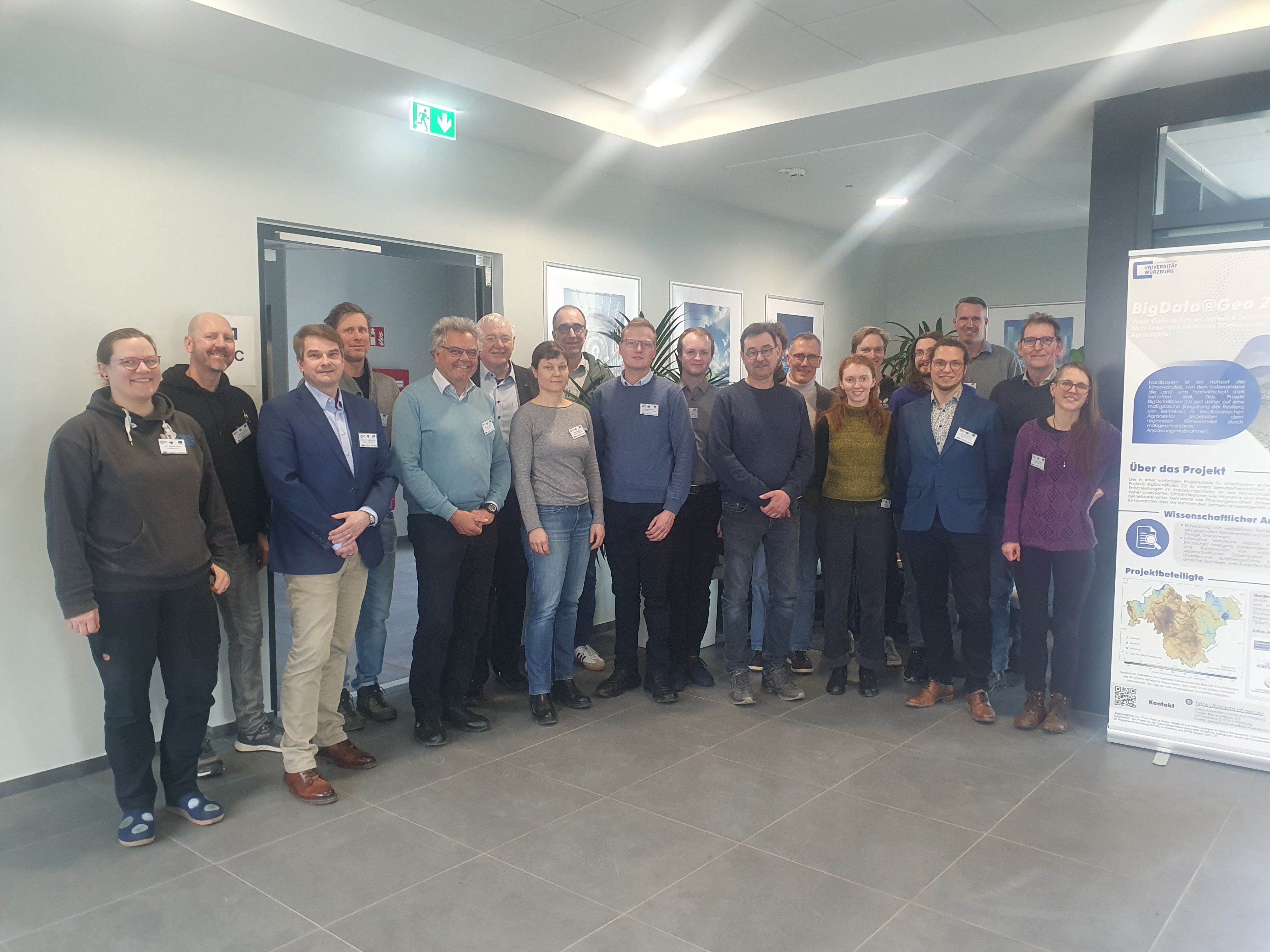 Zunehmende Veränderungen der Umweltsituation stellen Verantwortliche in Land- und Forstwirtschaft vor neue Herausforderungen. Kompetente Entscheidungen zum Umgang mit den sich verändernden Umweltbedingungen können nur getroffen werden, wenn ausreichend Wissen über die Gegenwart und Zukunft von Naturressourcen und Naturrisiken in der betroffenen Region vorliegt. In der Praxis ist der Abruf dieses Wissens jedoch oft umständlich, unübersichtlich oder unverständlich. Das Projekt BigData@Geo 2.0, welches im Zeitraum von 2023 bis 2027 durch den Europäischen Fonds für Regionale Entwicklung (EFRE) gefördert wird, zielt auf eine maßgeblich erhöhte Resilienz von kleinen und mittleren Unternehmen (KMU) im nordbayerischen Agrarsektor durch einfach zugängliche, maßgeschneiderte und räumlich wie betrieblich detailliert aufgeschlüsselte Anpassungsmaßnahmen im regionalen Klimawandel ab.