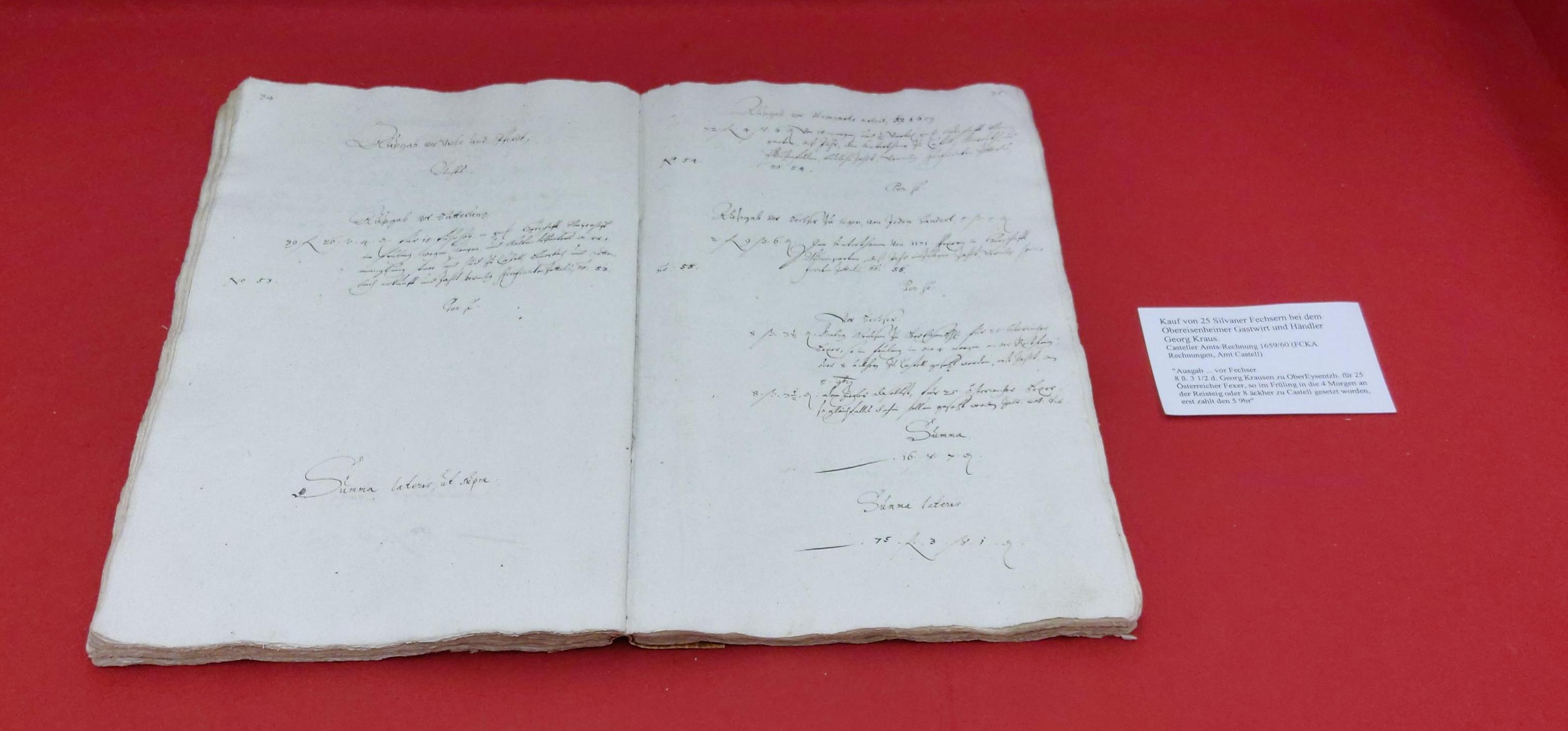 Einer Einladung, sich die originalen Aufzeichnungen über die ersten Silvanerpflanzungen in Castell anzuschauen, folgten die Wissenschaftler:innen Luzia Keupp und Armin Hofmann Anfang März 2026.